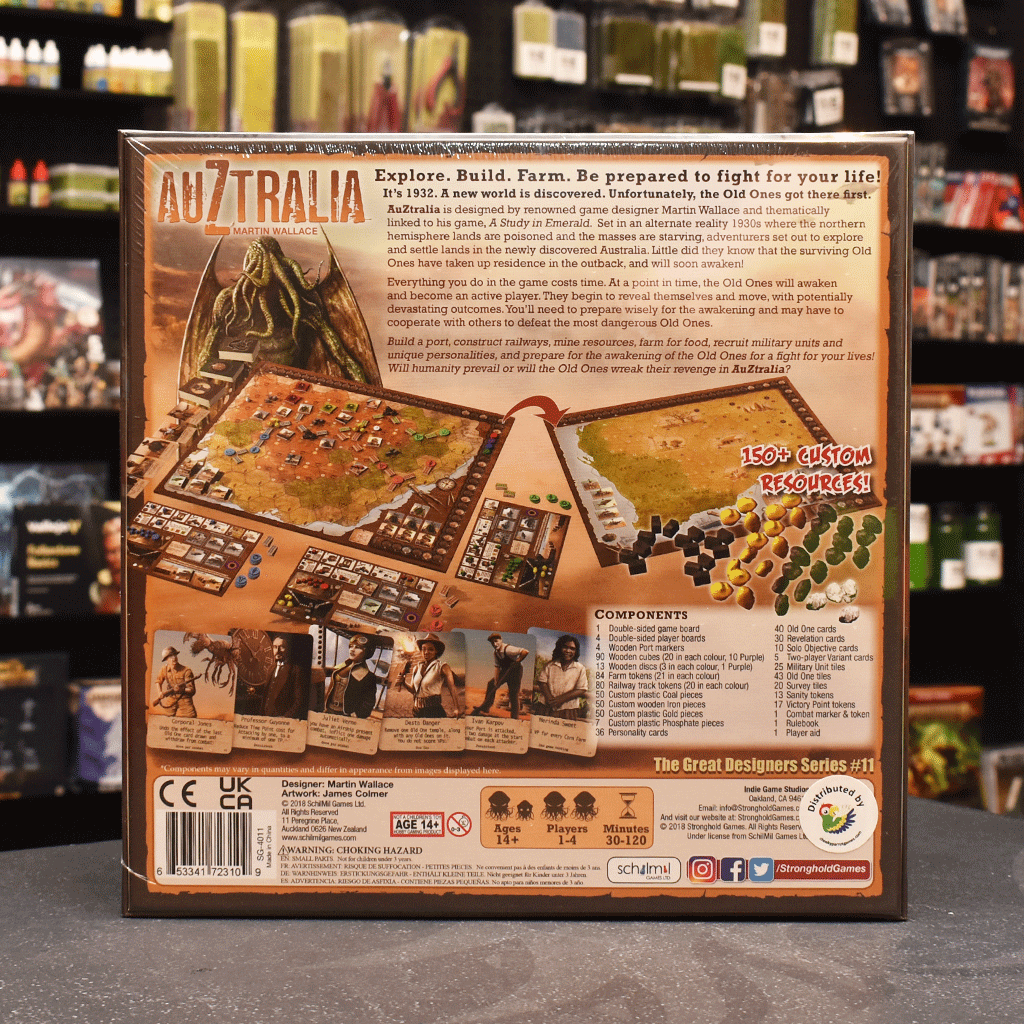 AuZtralia is an adventure/exploration game for 1 - 4 players set in an alternate reality 1930s. The theme is inspired by Martin Wallace’s board game ‘A Study in Emerald’.