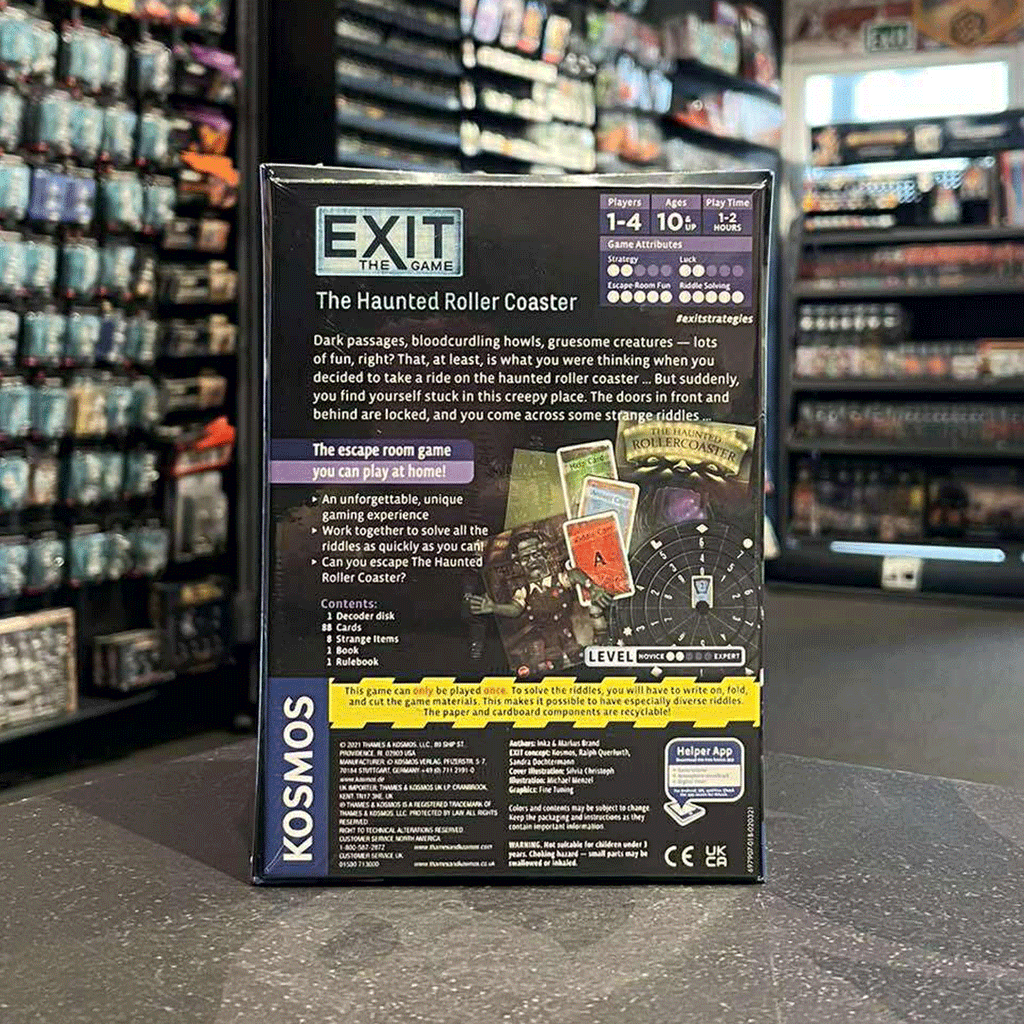 Exit the Game The Haunted Roller Coaster is a puzzle game modeled after escape rooms, and it includes components meant to be folded, written upon, or torn, so it's marketed as a single-use game.