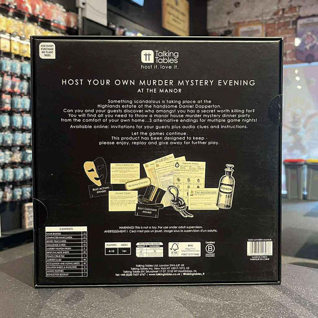 Something scandalous is taking place at the Highlands estate of the handsome Daniel Dapperton. Can you and your guests discover who amongst you has a secret worth killing for? You will find all you need to throw a manor house murder murder mystery dinner party from the comfort of your own home...