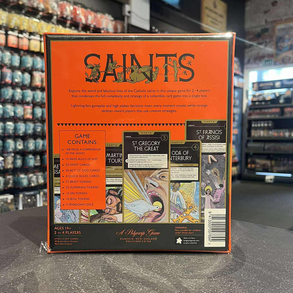 Explore the weird and fabulous lives of the Catholic saints in this unique game for 2-4 players that condenses the full complexity and strategy of a collectible card game into a single box. Lightning-fast gameplay and high-stakes decisions mean every moment counts, while strange abilities reward players that use creative strategies.