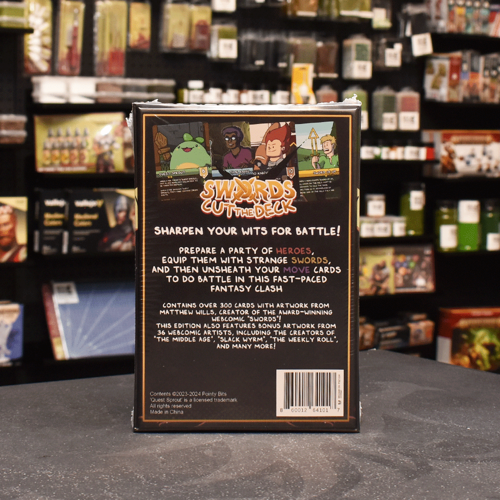 Swords: Cut the Deck is a tabletop role-playing card game based on the award-winning webcomic, SWORDS. In this game, a variety of odd heroes use funny and fearsome weapons in epic skirmishes. Who will prove their skill with the blade? And who will die by the sword?