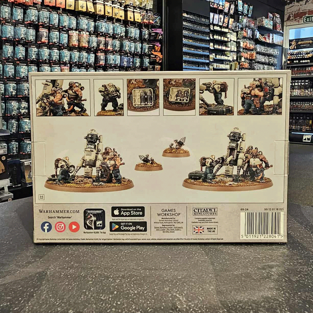 This kit comprises 87 plastic components, 2x Citadel 80mm Round Bases, 2x Citadel 25mm Round Bases, and 1x Leagues of Votann Transfer Sheet containing 555 high-quality waterslide transfers to decorate your miniatures.