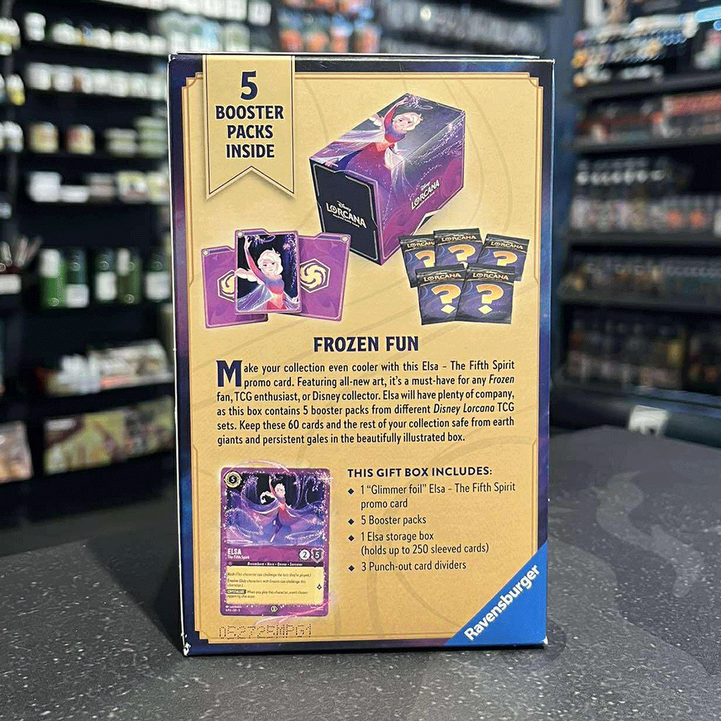 There's plenty of Frozen fun within this gift box. Any player's collection will get even cooler with the Elsa – The Fifth Spirit promo card. Featuring all-new art, it's a must-have for any TCG enthusiast or Disney collector. Elsa will have plenty of company, as this box contains 5 booster packs from different Disney Lorcana TCG sets. Collectors can keep these 60 cards and the rest of their collection safe from earth giants and persistent gales in the beautifully illustrated box.