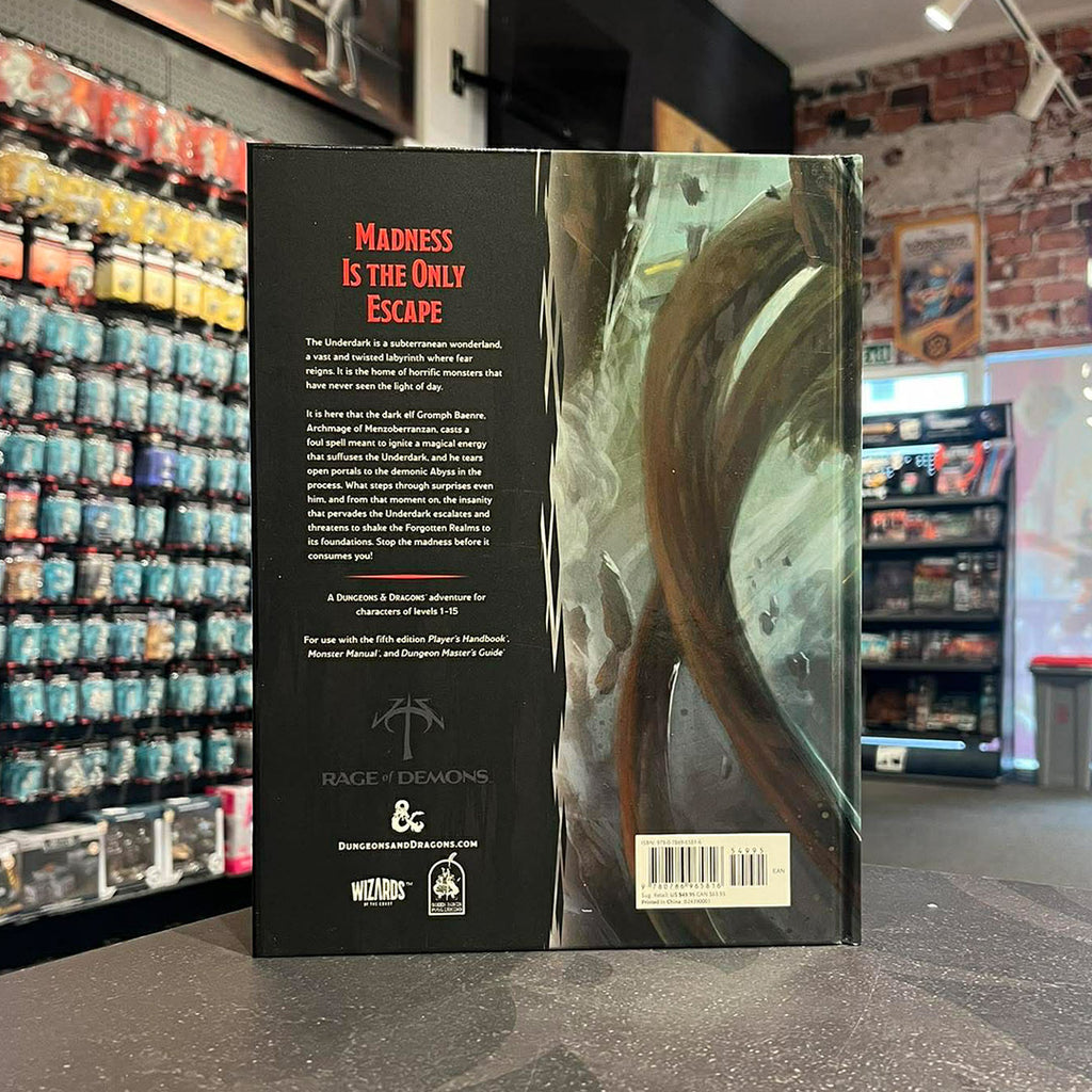 The Underdark is a subterranean wonderland, a vast and twisted labyrinth where fear reigns. It is the home of horrific monsters that have never seen the light of day. It is here that the dark elf Gromph Baenre, Archmage of Menzoberranzan, casts a foul spell meant to ignite a magical energy that suffuses the Underdark and tears open portals to the demonic Abyss. What steps through surprises even him, and from that moment on, the insanity that pervades the Underdark escalates and threatens to shake the Forgotten Realms to its foundations.