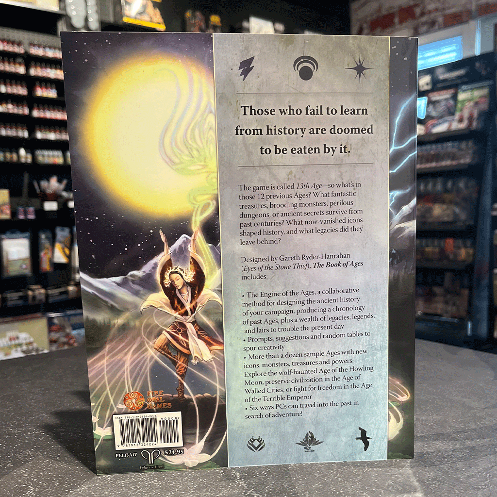 In the mystical world of 13th Age, where the present is shrouded in mystery, embark on an epic journey to explore the untold tales of the past with The Book of Ages. This awe-inspiring supplement, meticulously crafted by Gareth Ryder-Hanrahan, the mastermind behind Eyes of the Stone Thief, brings you a treasure trove of forgotten history, legendary icons, and thrilling adventures from the 12 previous Ages. Remember, "Those who fail to learn from history are doomed to be eaten by it," so seize this opportunity to uncover the secrets of the ages before they consume you.