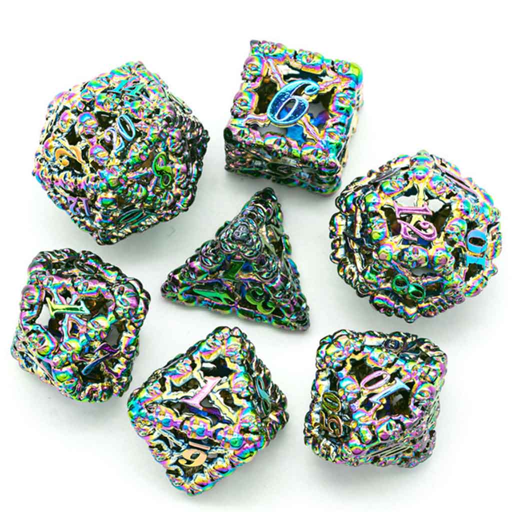 Anointed Skulls 7 Piece Hollow Metal Polyhedral Dice Set & Dice Case