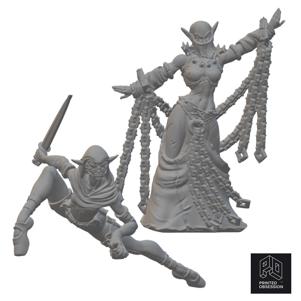 Aranea Webwalker and Drow Shadow Dancer | BeaMini Unpainted RPG Miniatures