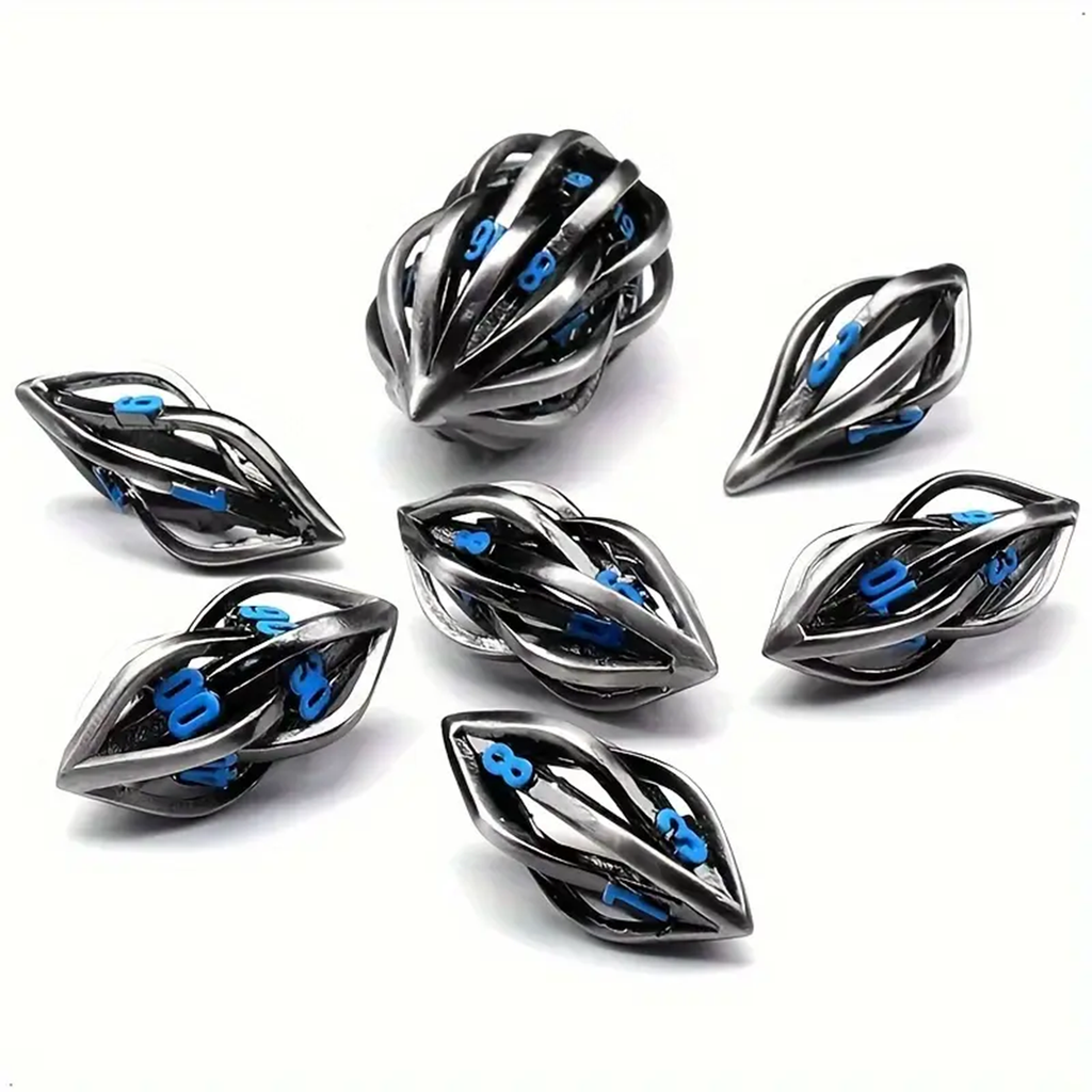 Arcane Dart - 7 Piece Hollow Metal Polyhedral Dice Set & Dice Case