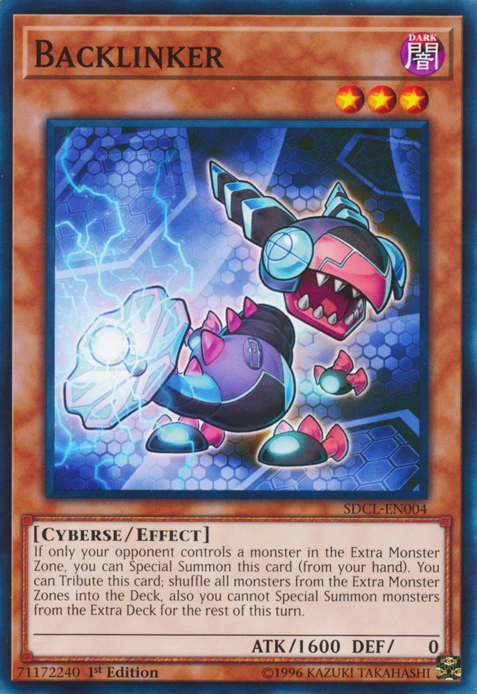 If only your opponent controls a monster in the Extra Monster Zone, you can Special Summon this card (from your hand). You can Tribute this card; shuffle all monsters from the Extra Monster Zones into the Deck, also you cannot Special Summon monsters from the Extra Deck for the rest of this turn.