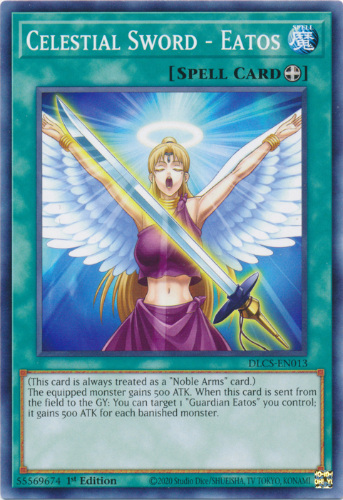 (This card is always treated as a "Noble Arms" card.) The equipped monster gains 500 ATK. When this card is sent from the field to the GY: You can target 1 "Guardian Eatos" you control; it gains 500 ATK for each banished monster.