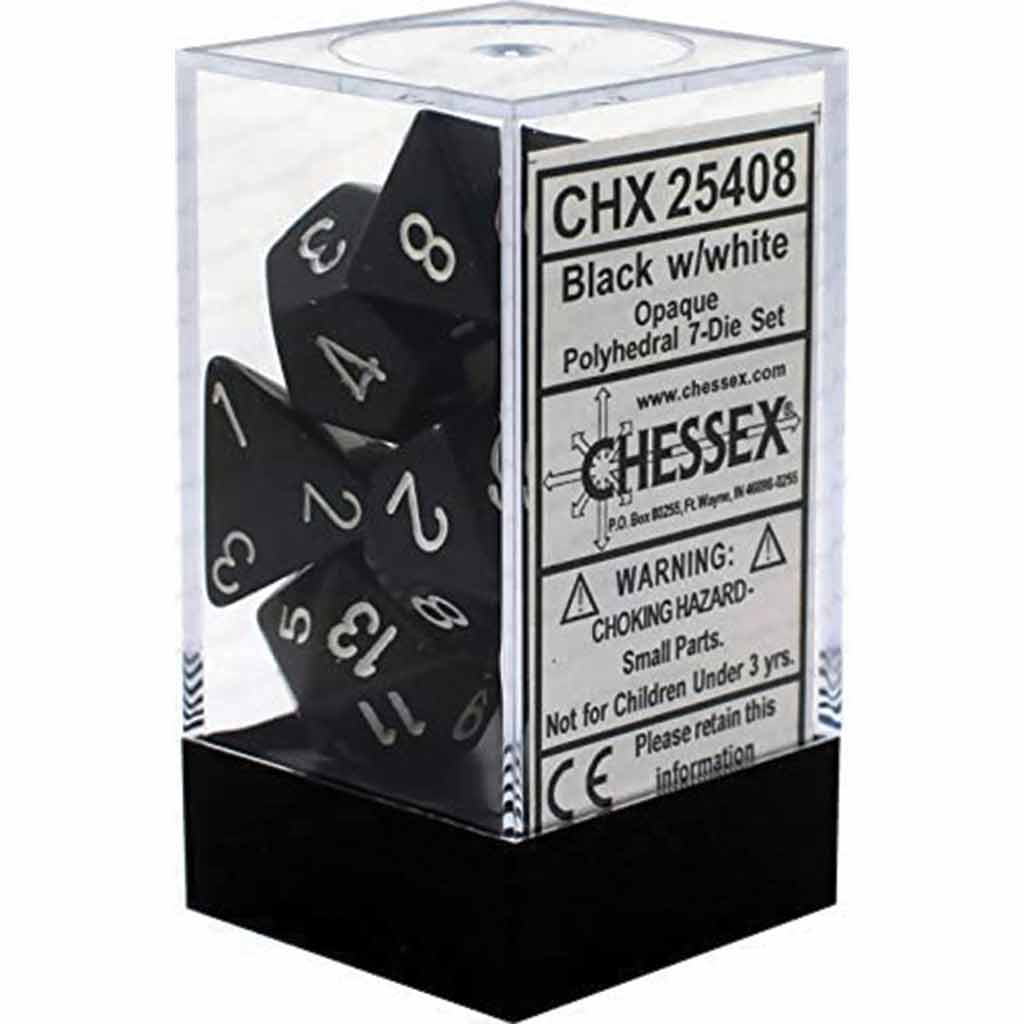 Chessex Opaque Black & White 7 Piece Polyhedral Dice Set (CHX 25408)