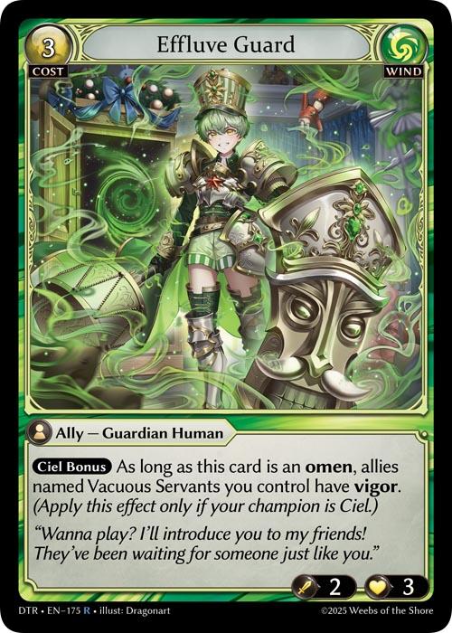 [Ciel Bonus] As long as this card is an omen, allies named Vacuous Servants you control have vigor. (Apply this effect only if your champion is Ciel.)