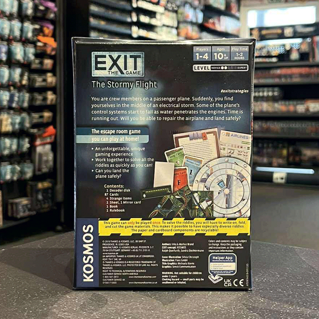 Team spirit, creativity, mystery and speed are in demand at "EXIT - The Game - The Flight Into the Unknown". The 1-4 players have little time to bring a complicated situation under control again: The players are part of the crew of a passenger plane. Suddenly they get into the middle of a storm. Water penetrates the machine and parts of the technology fail. Will the team be able to repair the aircraft and land safely? There is not much time left ...